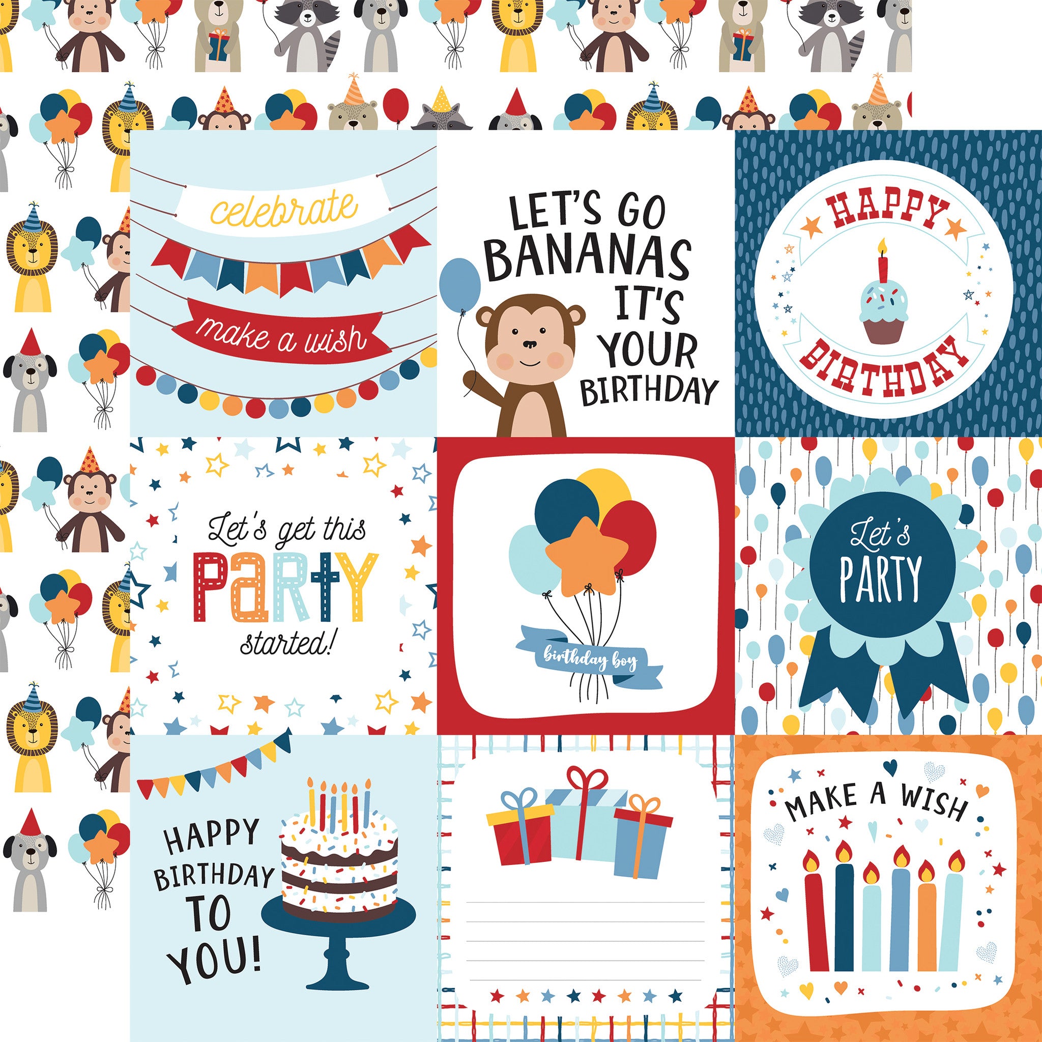 Birthday Boy 4x4 Journaling Scrapbook Paper